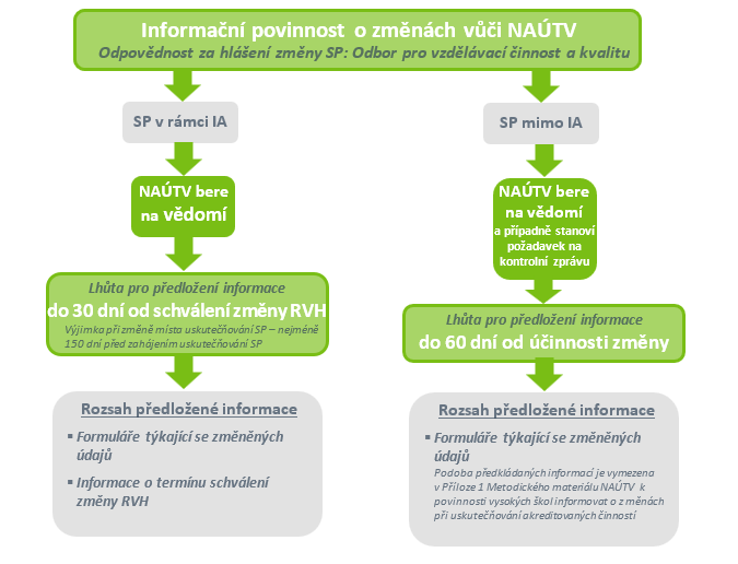 - Metodický materiál Národního Akreditačního úřadu pro vysoké školství k povinnosti vysokých škol informovat o změnách při uskutečňování akreditovaných činností
