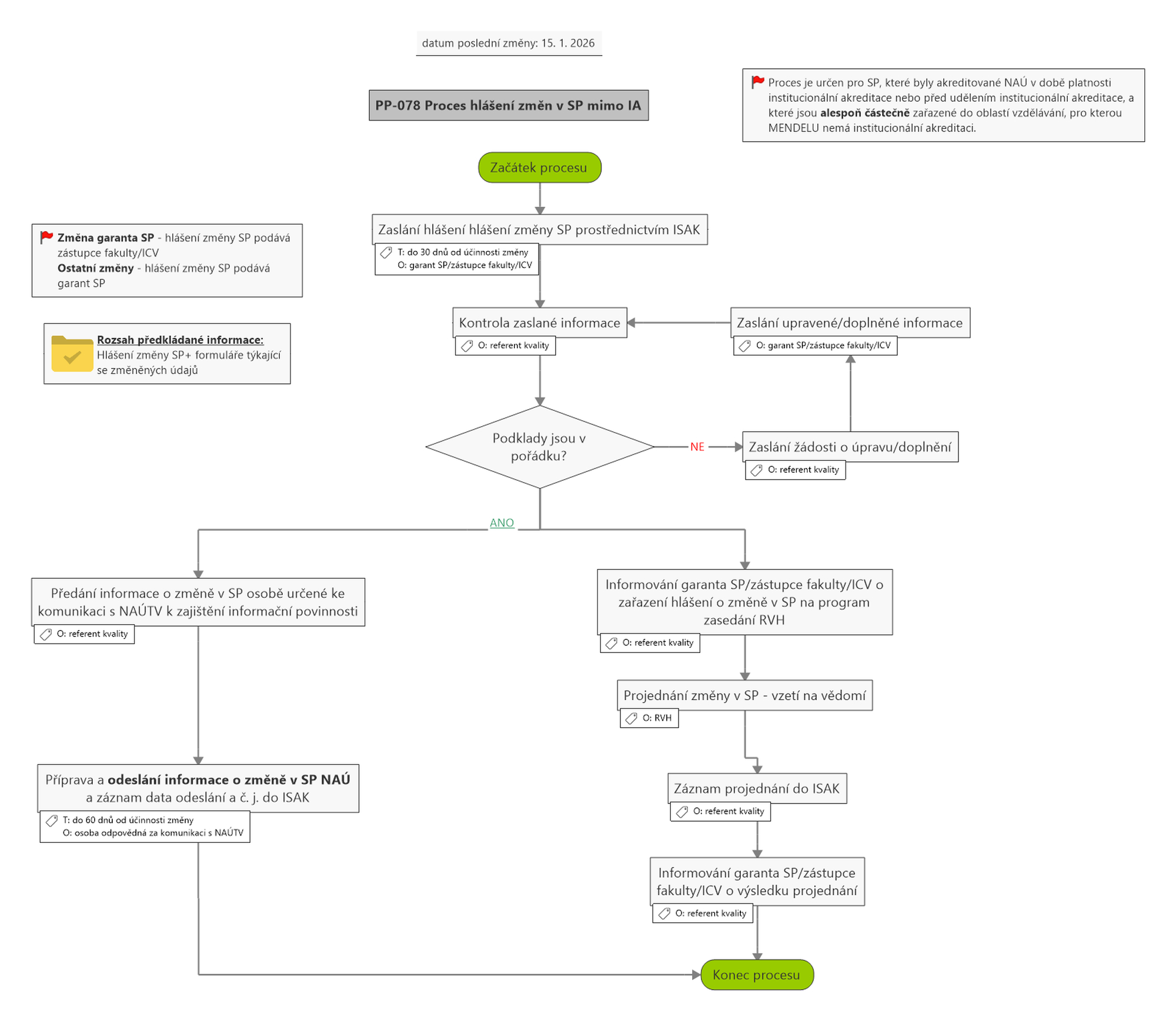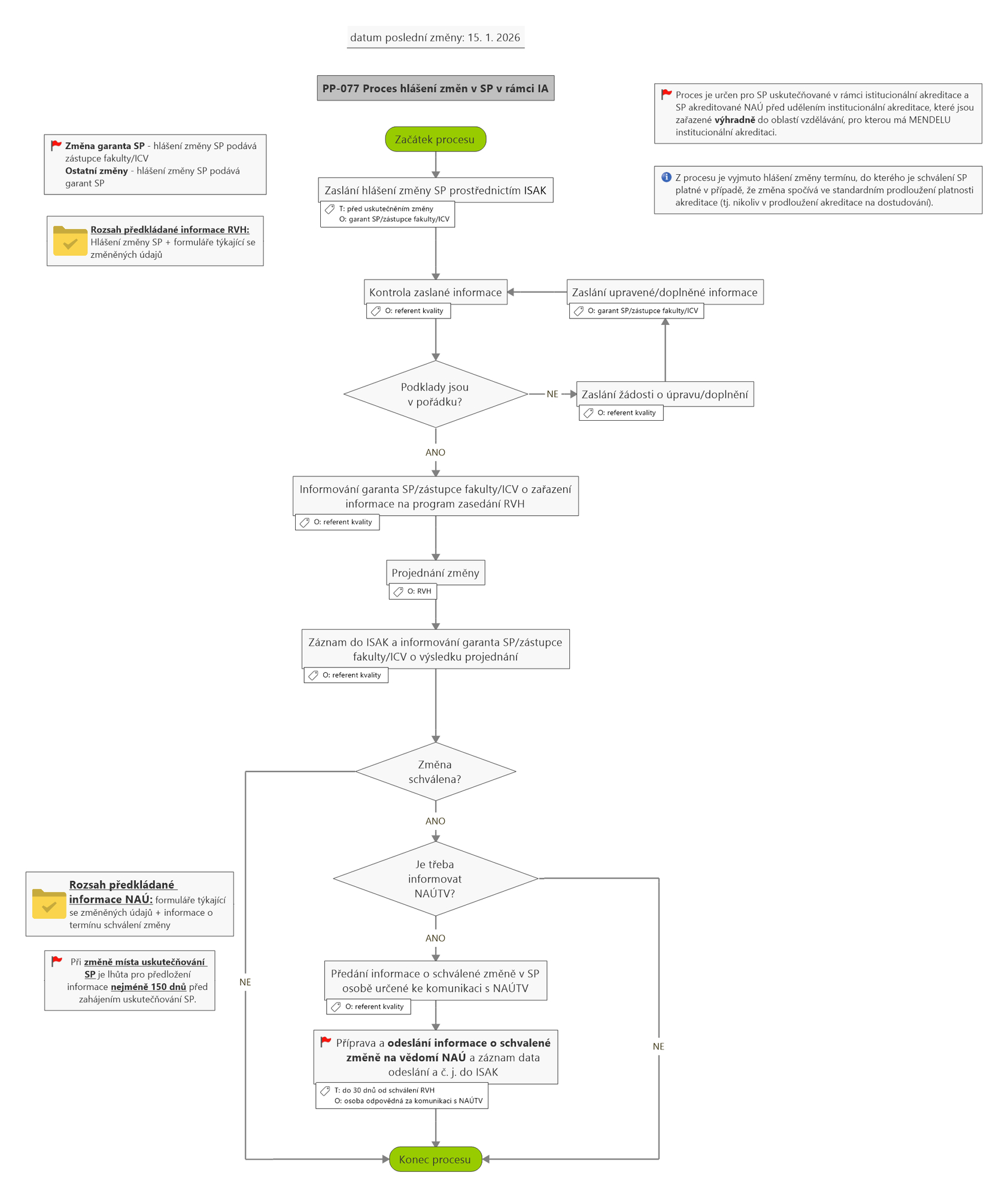Změny v základních atributech SP lze provést pouze akreditací nového SP nebo posouzením a schválením nového SP v rámci oprávnění vyplývajících z institucionální akreditace.